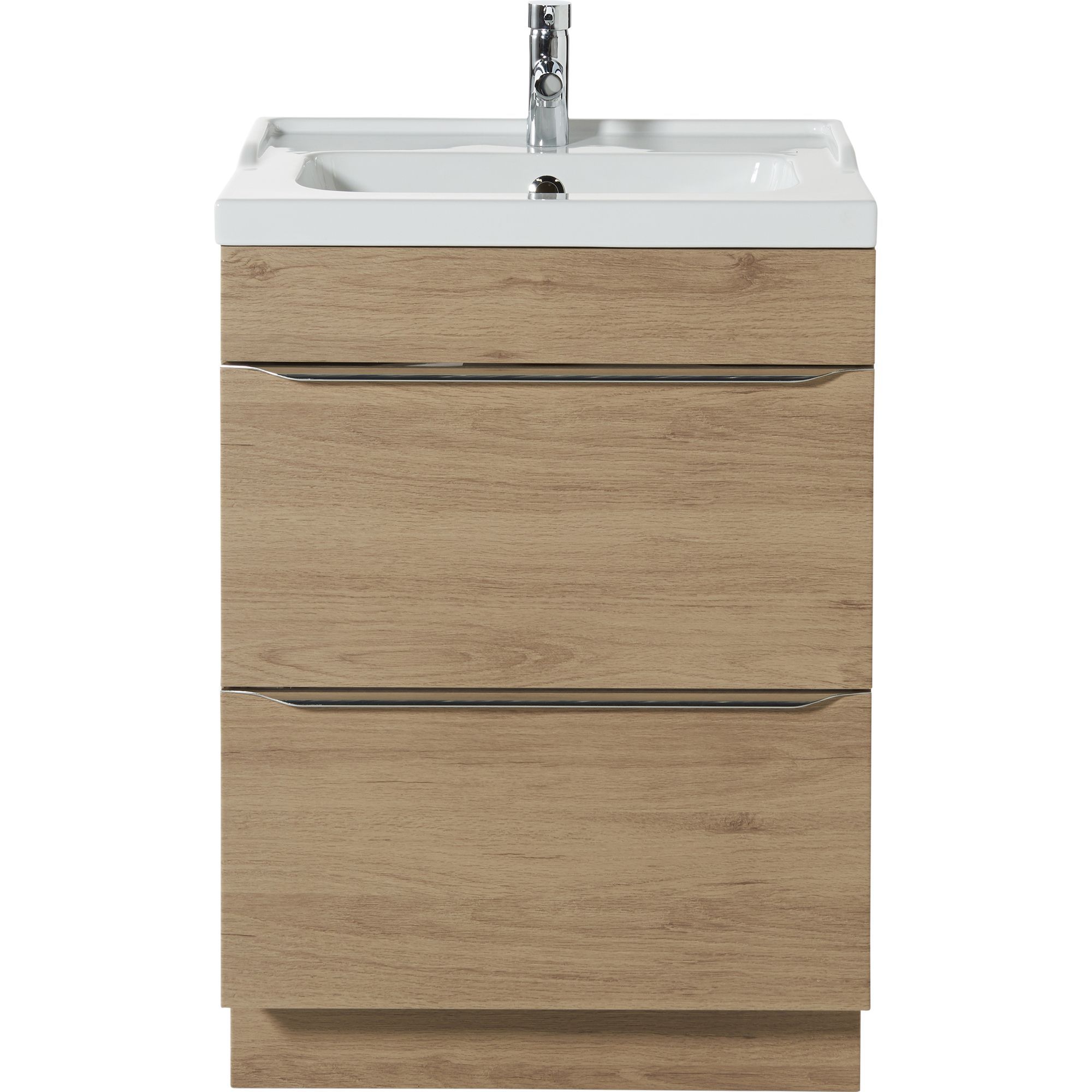 Goodhome Imandra Oak Effect Freestanding Vanity Unit Basin Set W 604mm Diy At B Q